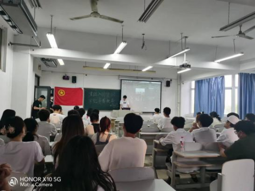 首先,我们进行了宣誓仪式;团员们面对鲜艳的中国共产主义青年团团旗,高举右手,紧握右拳,郑重地再次入团宣誓。“我志愿加入中国共产主义青年团,坚决拥护中国共产党的领导,遵守团的章程,执行团的决议,履行团员义务,严守团的纪律,勤奋学习,积极工作,吃苦在前,享受在后,为共产主义事业而奋斗!"铮铮誓词在室内回荡,每位团员胸佩团徽,表情庄严肃穆,誓词铿锵有力!