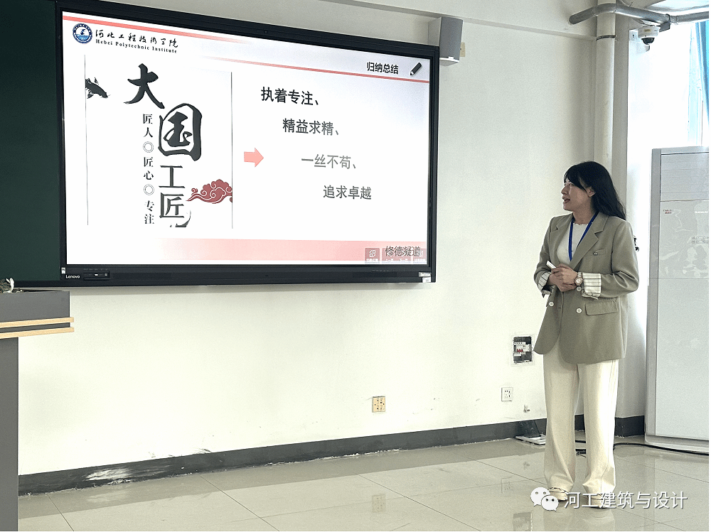 本次大赛共有九位教师参加决赛,比赛中各位参赛教师围绕学科专业进行了充分的准备,精彩纷呈。孙慧斌老师以赵州桥的拱结构为例,阐述了我国悠久的建筑技术发展史;郑琪老师以无障碍坡道设计为切入点,诠释了建筑的人文关怀;牛文玥老师以长信宫灯引入,细数汉唐工匠智慧;马村老师着眼于办公空间,阐述了现代建筑的人本主义;谷雨欣老师立足人与自然,介绍了景源分类;高丹老师以藻井彩绘为素材,梳理了装饰色彩的特点;龚洁净老师以敦煌壁画为内容,用英语讲述了中国故事;曹静静老师以我国C919大飞机研制为着力点,讲说我国航天的飞速发展;王彤匀老师倾力于贝聿铭的卢浮宫扩建工程,以提升审美力为旨归,展示了建筑与美的碰撞。最终郑琪获得一等奖,谷雨欣、龚洁净获得二等奖,高丹、牛文玥、王彤云获得三等奖。