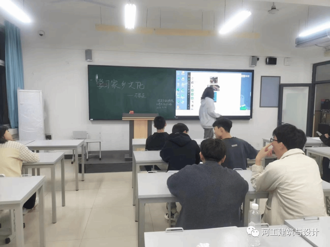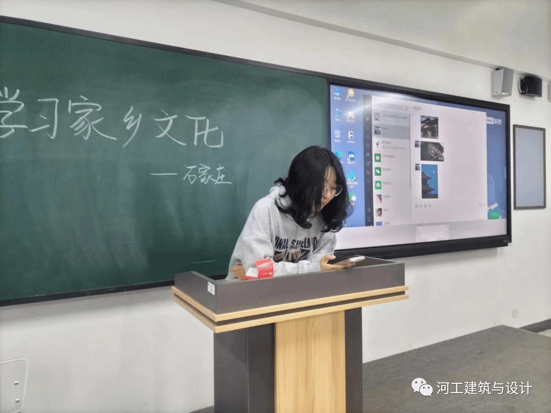 古郡新姿,乡愁国梦,称心如愿,天下正定。为了促进班级同学的团结,了解来自各地独有的家乡文化,我校建筑与艺术学院2022级艺术设计5班同学于2023年3月26日星期日在主教606举办“百班百品”主题活动,由班长和副班长组织做好准备工作,要求同学们准时到达教室,班会于晚上7:00正式开始。同学们在教室做好准备,本次活动由李雯洋同学进行分享她的家乡——石家庄正定,由宣传委员进行拍照。活动开始,李雯洋同学进行对正定的简单介绍。
