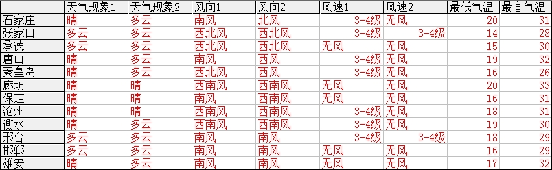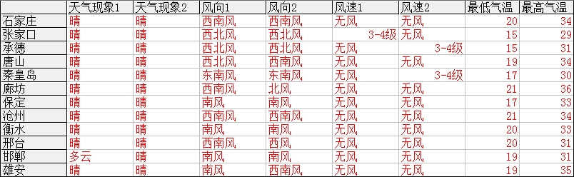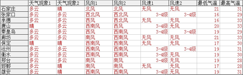 二、未来三天全省主要城市气象要素预报(河北省气象台)
