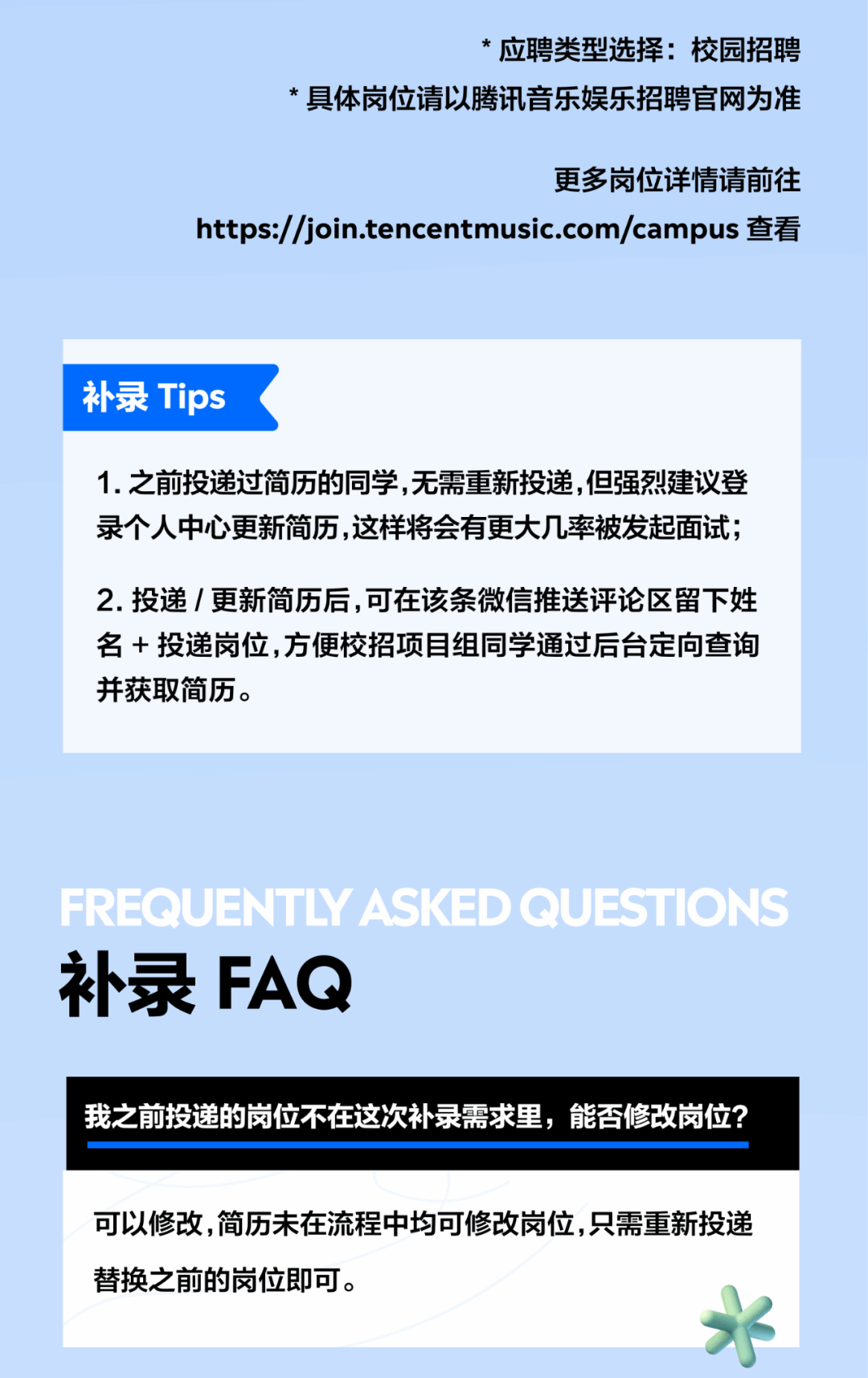 「招聘公告 」腾讯音乐娱乐集团2023校园招聘持续进行中!