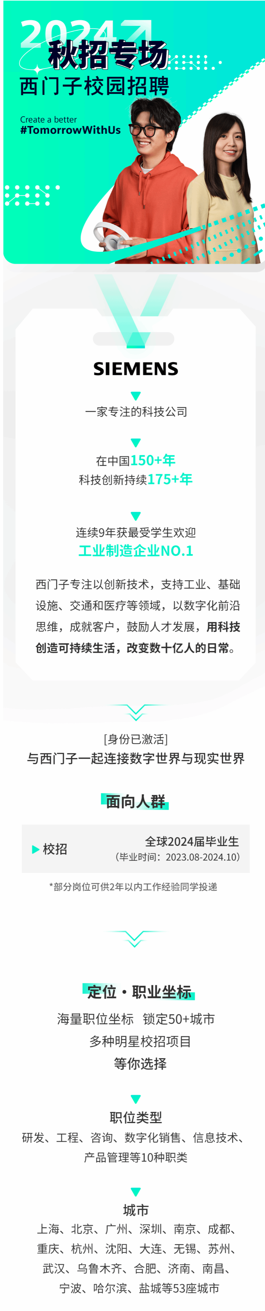 「招聘公告」西门子2024届秋季校园招聘开启!