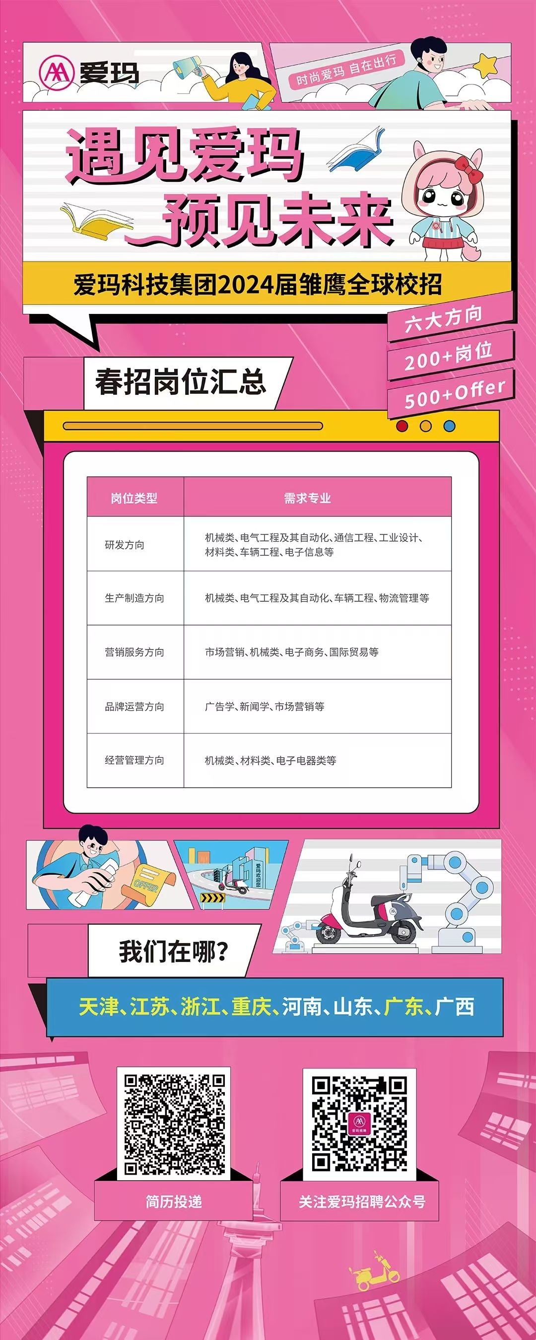 「招聘公告」爱玛科技集团2024届雏鹰全球校招