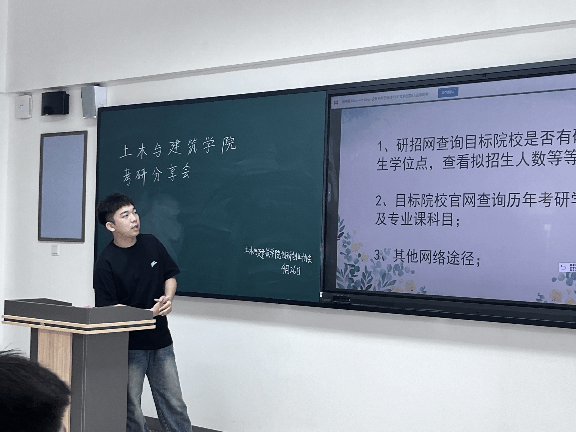 为了帮助2021级、2022级学子尽早规划考研目标和复习计划,土木与建筑学院于4月25日、26日在知行楼成功举办了6场“研途共进•朋辈领航”考研经验分享交流会。此次分享会由招生就业办公室与创业创业协会共同举办,邀请了张若晗、梁孜健、陆鸿飞等12名考研优秀学子作为主讲人,为大家分享考研经验。