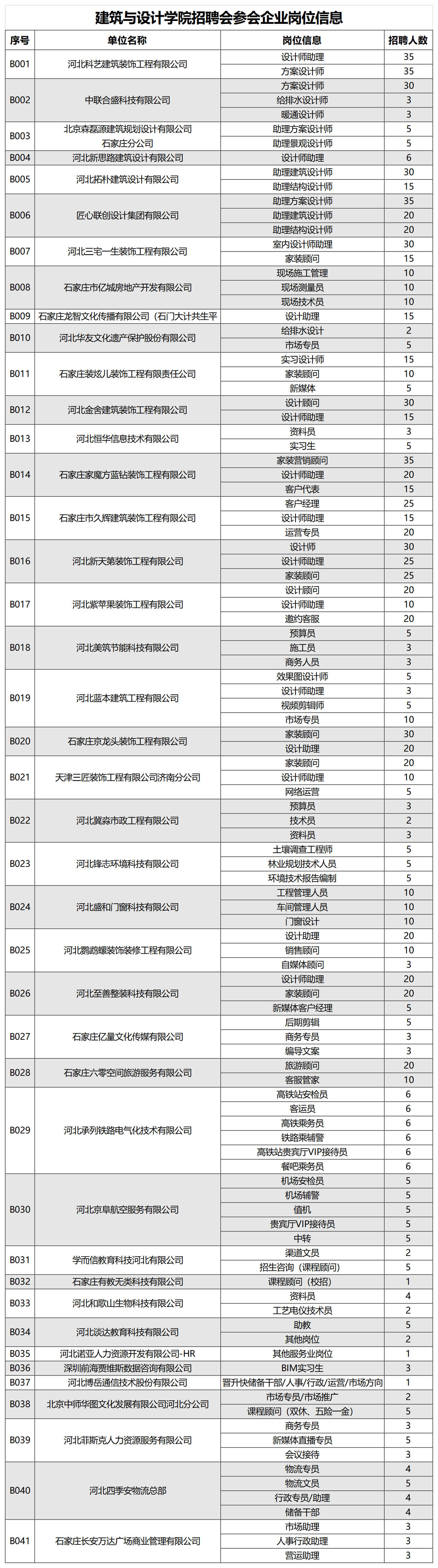 建筑与设计学院招聘会参会企业岗位信息
